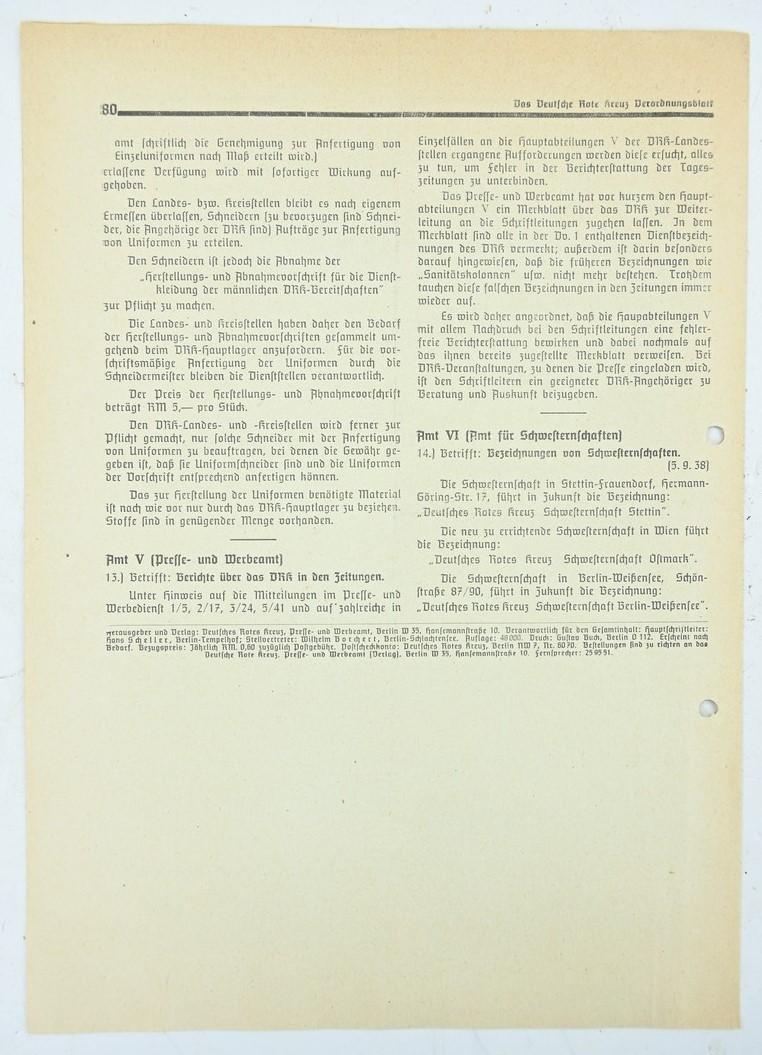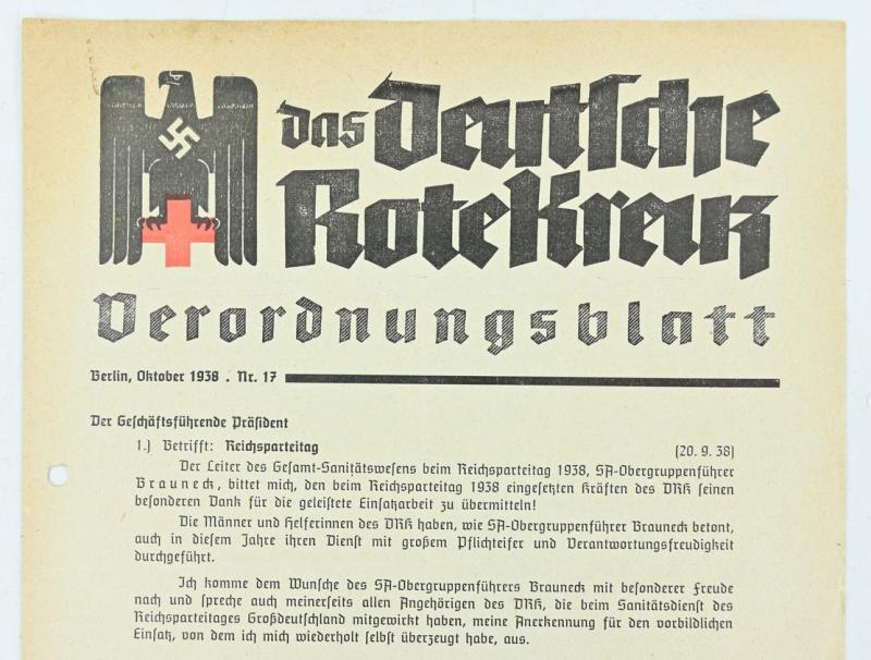 In a very good condition a German Third Reich DRK 'Verordnungsblatt' (regulation sheet). The sheet is dated October 1938.
