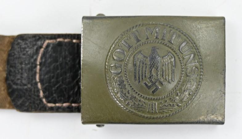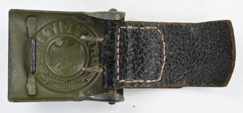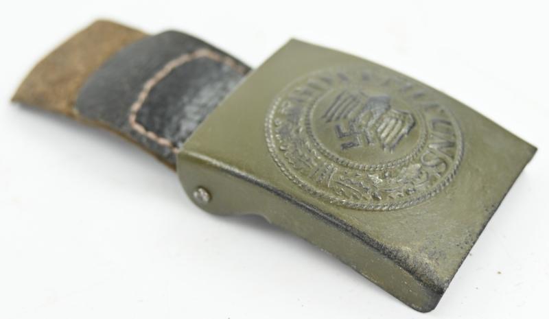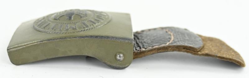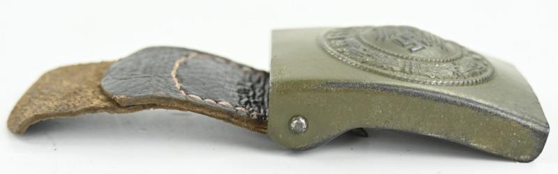 In a very good condition a German Wehrmacht beltbuckle with leather tab.