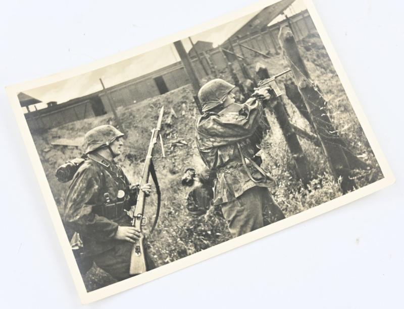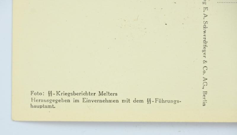 In a very good condition a German Waffen-SS Kriegsberichter Postcard. The postcard is from the serie 'Unsere Waffen-SS' . A very nice SS picture on the postcard!