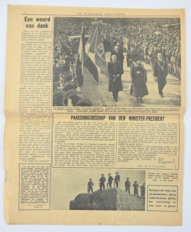 In a very nice condition an Allied Droppingsflyer 'De Vliegende Hollander' dated Paaschen (Easter) 1945