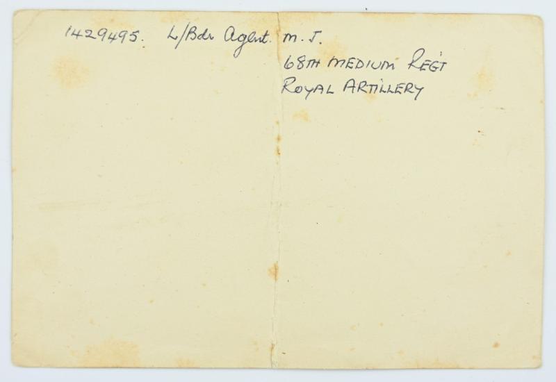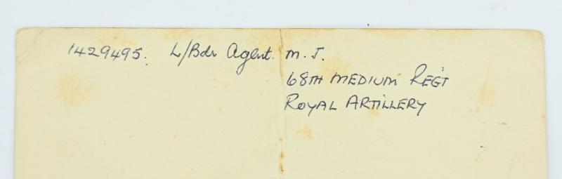 The note was addressed to veteran M.J.Agent of the 68th Medium Regiment, Royal Artillery.