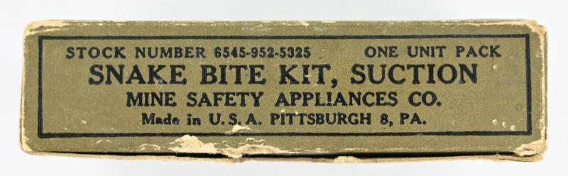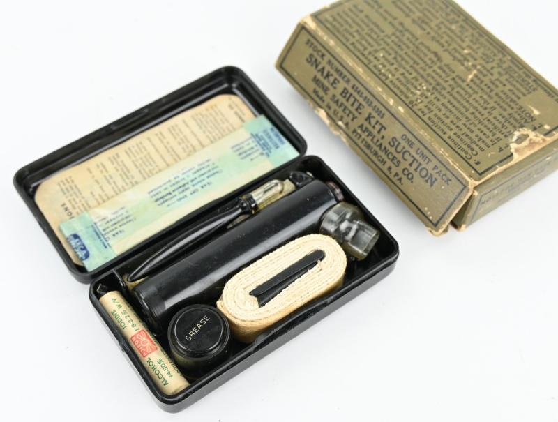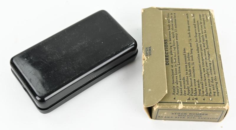 In a very good condition a US WW2 Snake Bit Suction Kit. The kit is still in a complete and never used condition with the original carton package. A hard to find medical set!