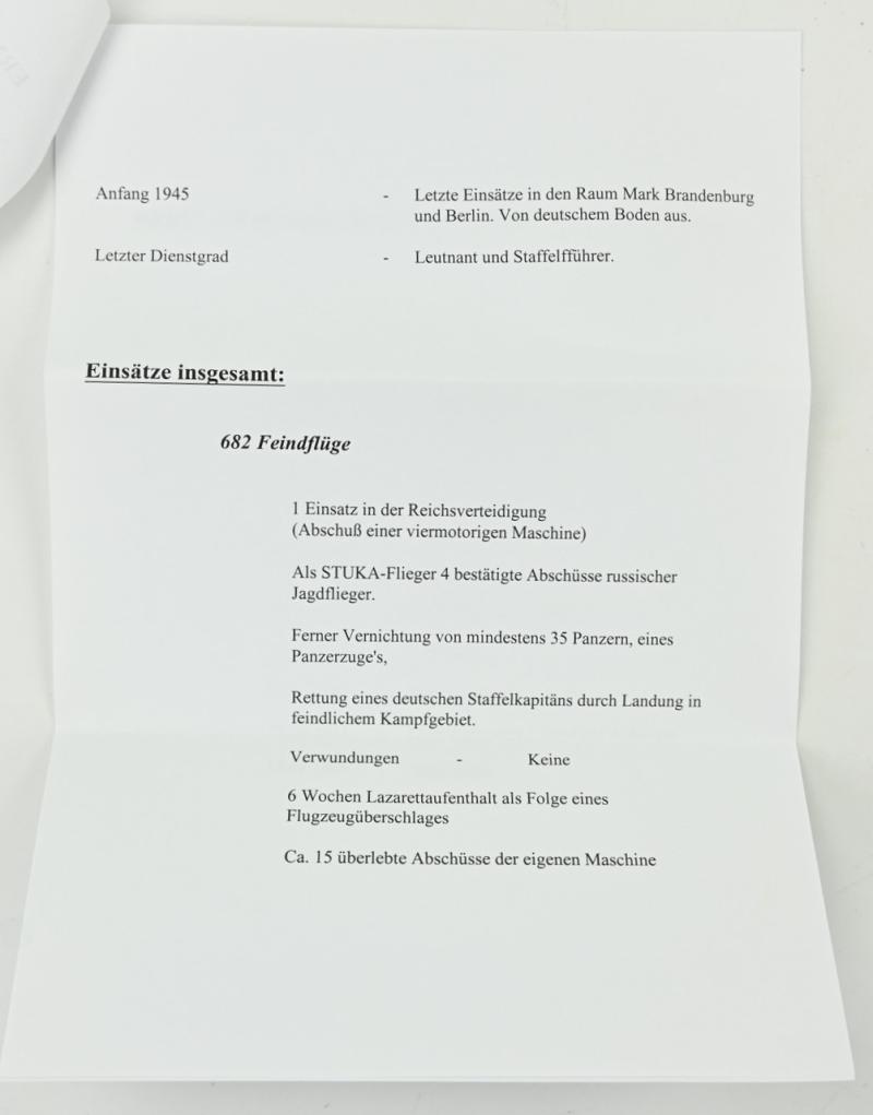 The picture with signature comes with a letter from Ernst and his wartime achievement record.