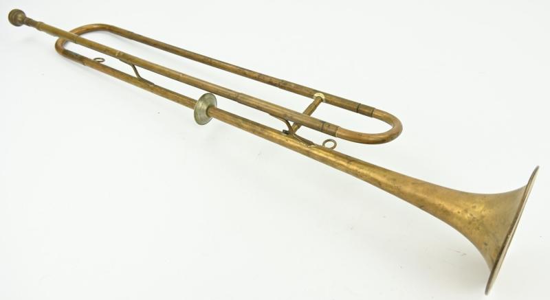 In a very good and working condition a German Hiter Youth (Hitlerjugend) Trumpet. The brass made trumpet comes in a working condition. A very nice display item!