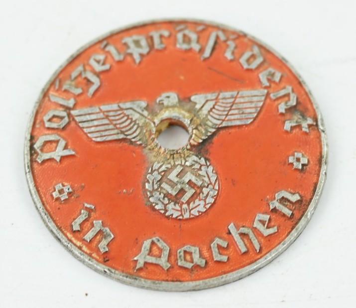 In a very good condition a stunning German Third Reich License Plate Tag. The aluminium made tag comes with the region (landrat) of 'Aachen' marked on it together with the german swastika.