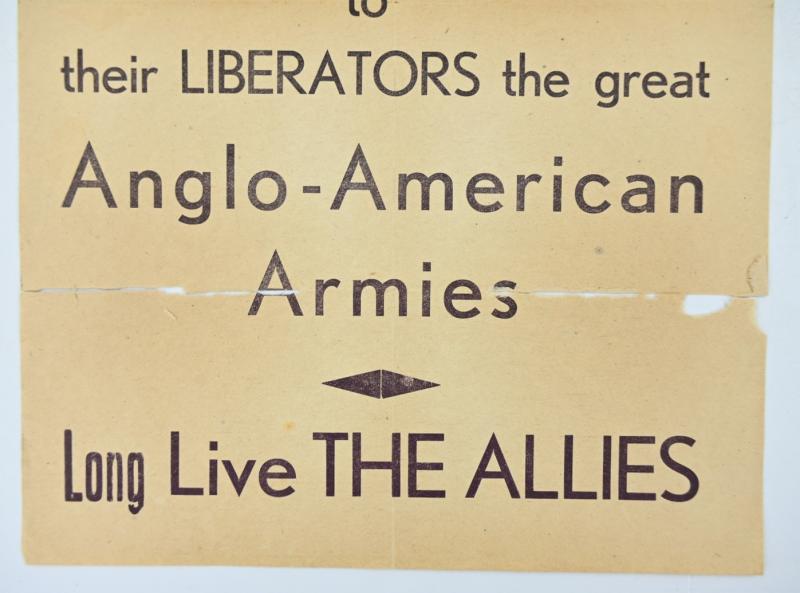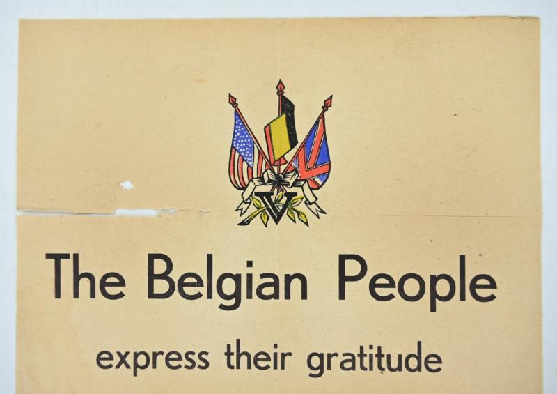 In a fragile condition a tin paper poster/flyer in a size of approx 25x40cm a Belgian WW2 Poster for the allied liberators!