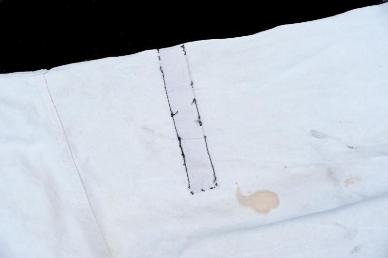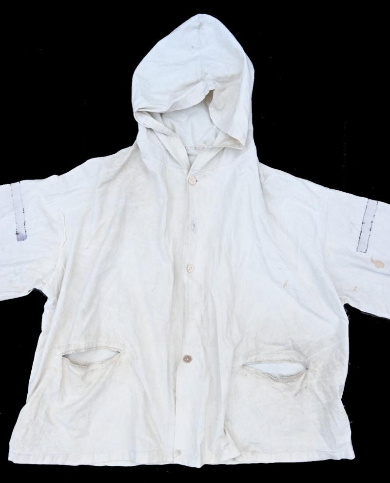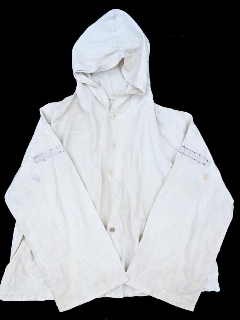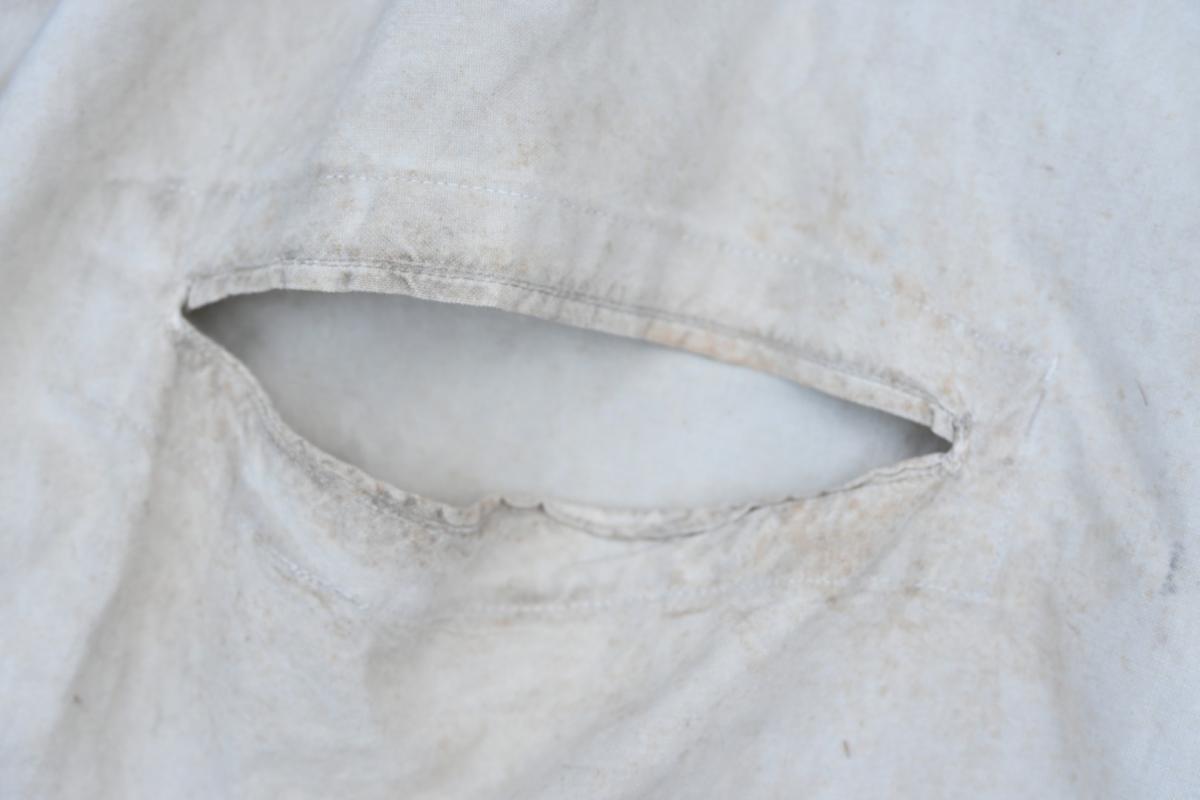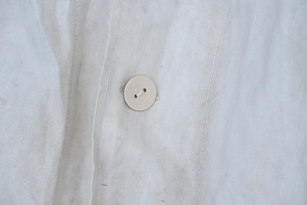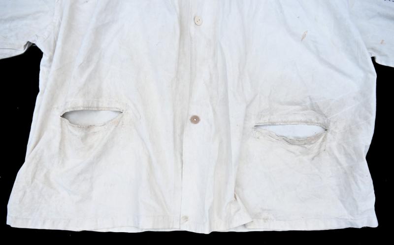 The smock is complete with paper buttons and has also traces of the black arm stripes for identification purposes.