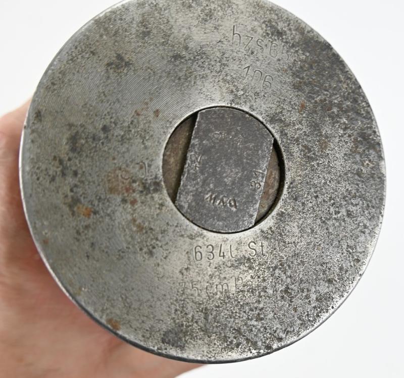 In a very good condition a stunning German 7,5cm Pak 40 Grenade Shell. The steel made shell is nicely stamped on the bottom and comes without dents. A very nice hard to find shell for display!