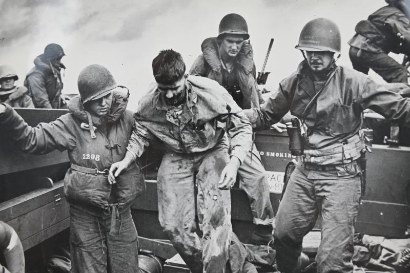 In a very nice condition a USMC WW2 Press Photo of an beach evacuation on Iwo Jima from a wounded soldier. The picture comes in a size of 12x15cm.