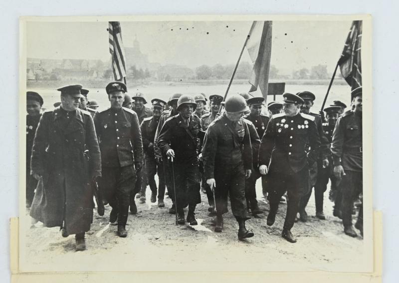 In a very nice condition a US WW2 American-Russian Link-Up Press Photo at the Elbe river. The picture comes in a size of 15x20cm.