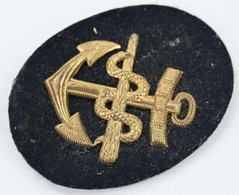 In a very good condition a German Kriegsmarine Career Badge for a Sanitatsmaat. The batch comes in metal and has a cloth backing original attached. A very nice badge!