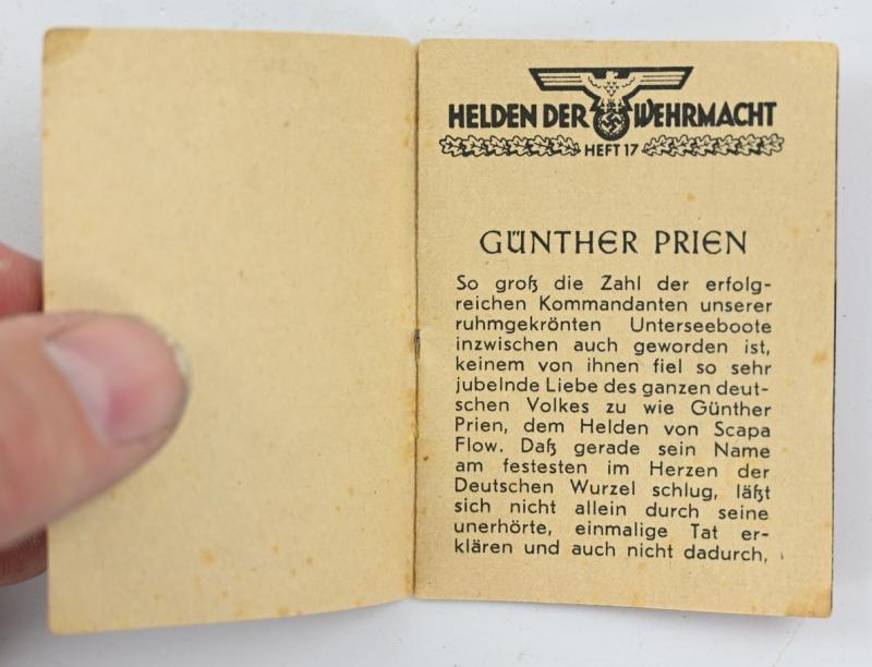 In a very good condition a German WHW Winterhilfswerke Pocket Booklet from the serie Helden der Wehrmacht Heft 17,Gunther Prien. A very nice booklet and great to search all versions!