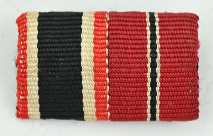 In a very good condition a German Wehrmacht 2-Pieced Ribbonbar. The ribbonbar contains the medalribbons of the War Merit Cross and the Eastern Front medal.