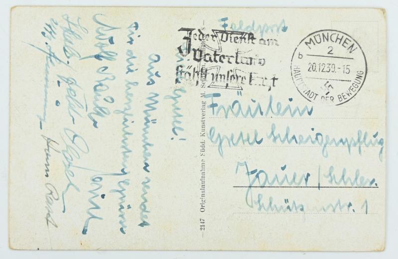 In a very nice condition a German NSDAP Postcard 'Feldhernhalle'. The postcard is written on the reverse side by a party member and/or soldier.