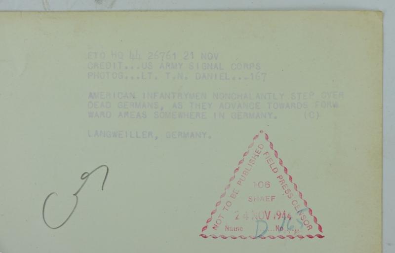 In a very nice condition condition a US Press Photo take in the german town of Langweiler in November 1944.