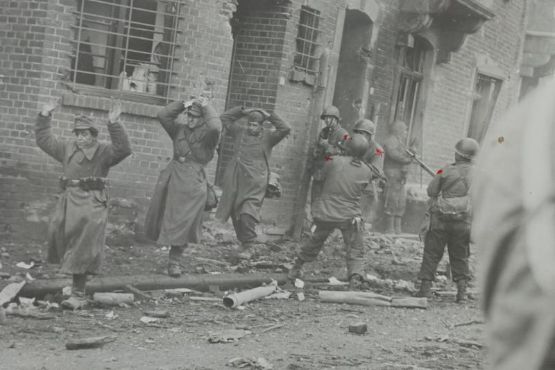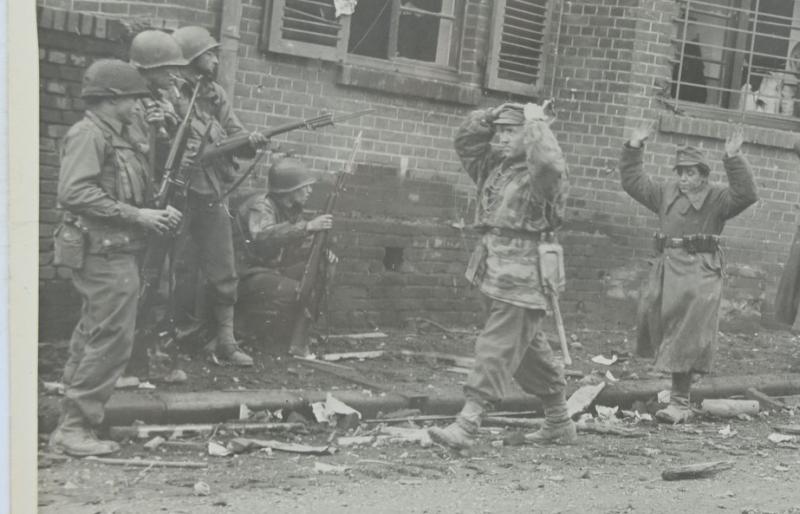 On the picture are US soldiers of the Ninth Army taking Prisoners.