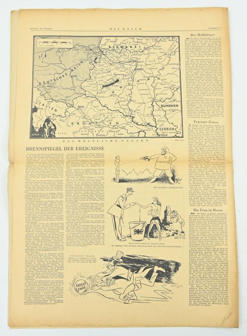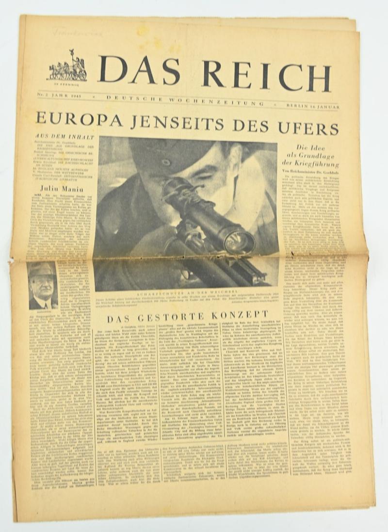 In a very nice condition a German Newspaper “Das Reich” dated 14 January 1945. The paper comes with a very nice header.