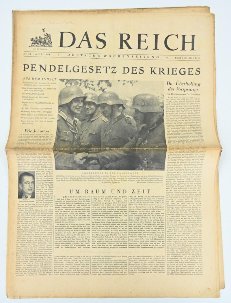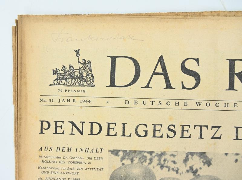 In a very nice condition a German Newspaper “Das Reich” dated 30 July 1944. The paper comes with a very nice header.