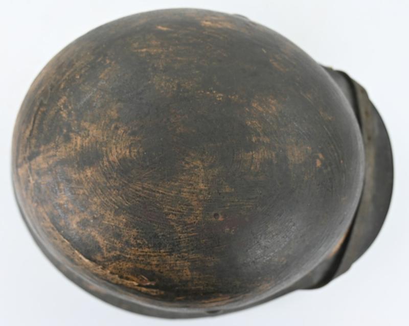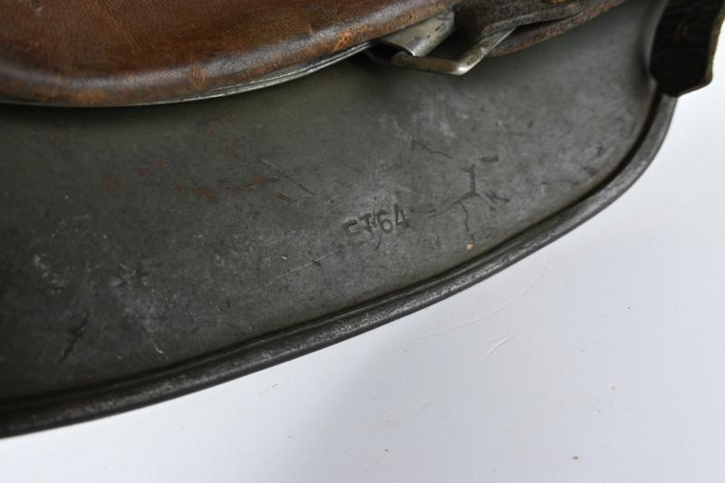 The liner is original attached to the shell and is complete with an early Aluminium chinstrap (shortened).