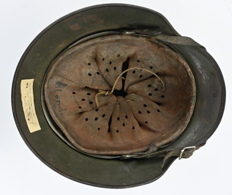 Inside the helmet liner is the name of the former owner written Karl-August Blendermann.