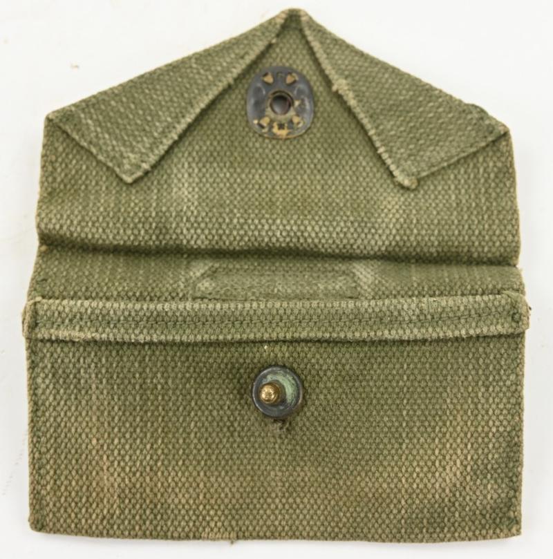 In a used condition a US WW2 M-1924 First Aid Pouch. The pouch is maker marked but not readable and comes in the OD7 colour.