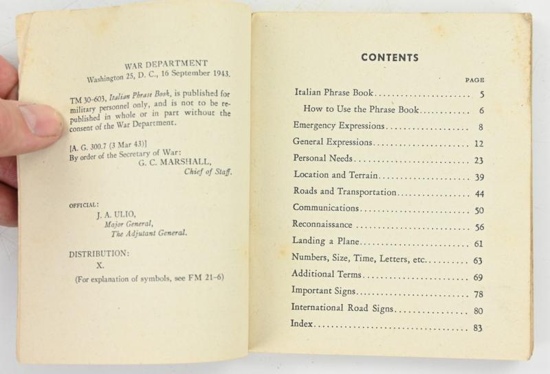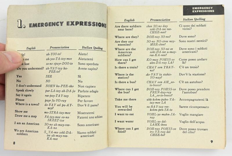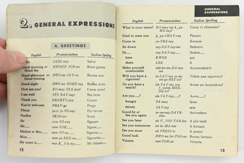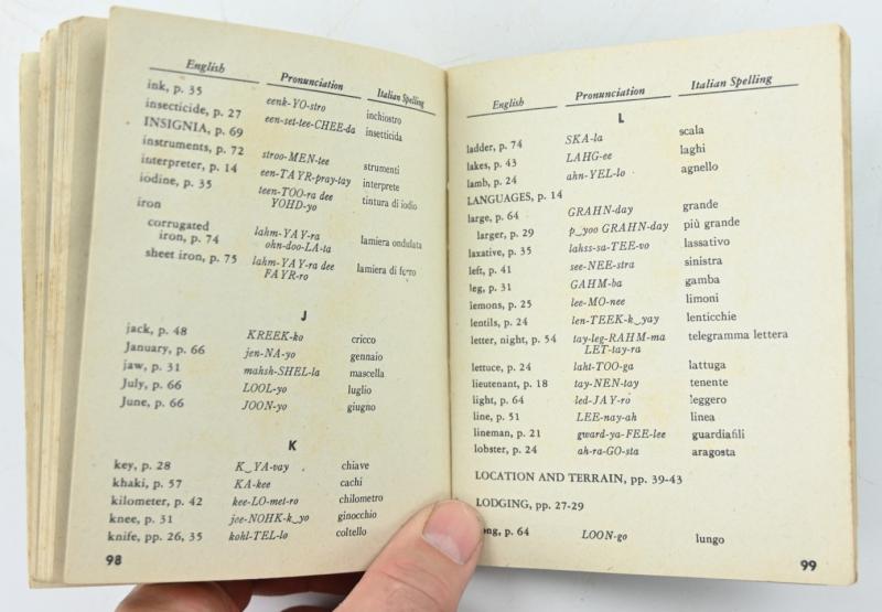 In a very good condition a US WW2 Italian Phrase Book. The book is nicely dated 1943 and comes in a complete condition.