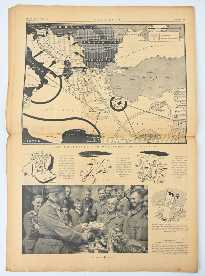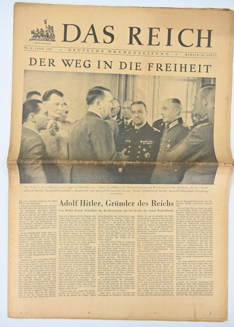 In a very nice condition a German Newspaper “Das Reich” dated 20 April 1941 (Hitler's Birthday) The paper comes with a very nice header.