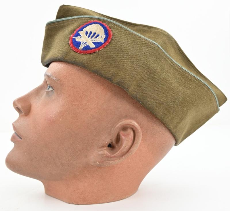 In a very good condition a nice used US WW2 Airborne Division Paratrooper Garrison Cap . The cap comes in a very good large mannequin head size.