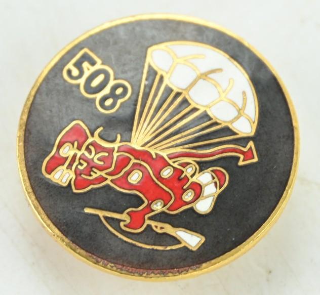 In a very nice condition a postwar US Army 508th Parachute Infantry Regiment 82nd Airborne Division DUI Unit Crest Pin. The pin comes with the clutch back attachment.