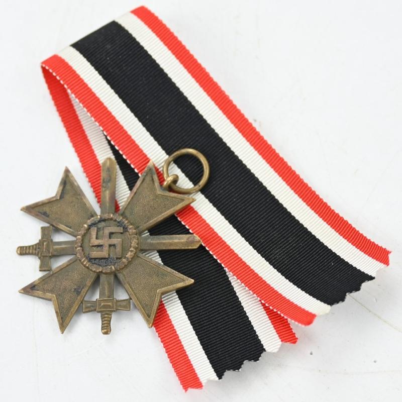 In a very nice condition a German WW2 War Merit Cross 2nd Class with Swords. The cross comes without maker marking but with the original ribbon.
