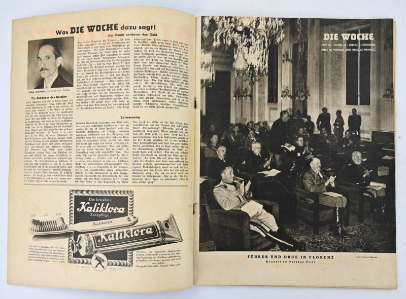 In a very nice condition a German Third Reich Magazine 'Die Woche'. The magazine is dated 6 November 1940 and comes with a stunning colour printed cover.