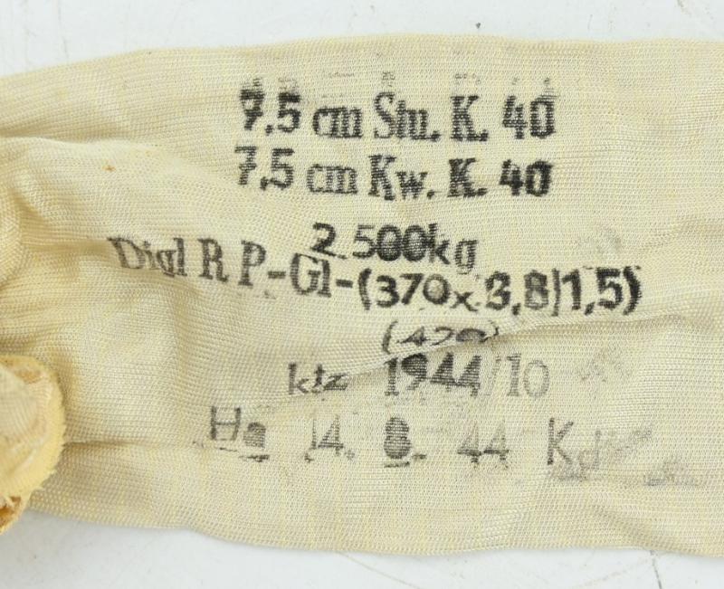 The bag is in a good supple shape and is nicely marked for the shells of the 7,5cm KWK40 and 7,5cm Stu K.40.