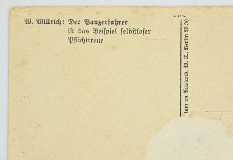 In a nice condition a German Wehrmacht Postcard 'Der Panzerfahrer' made by Willrich.