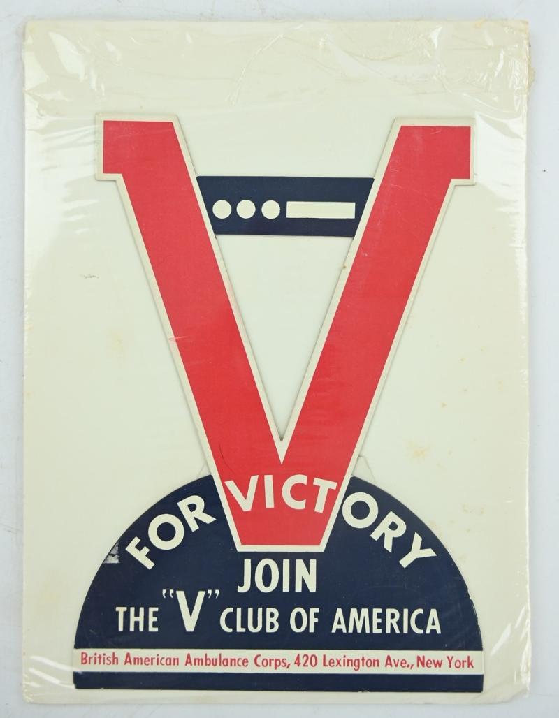 In a very good mint condition a US WW2 'V for Victory' Sign. The carton based sign comes in a size of 20x30cm and is still in the original packing! A very stunning sign for display purposes!