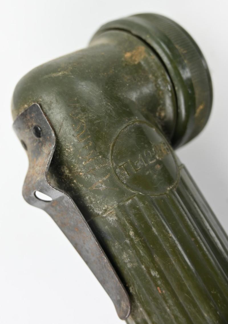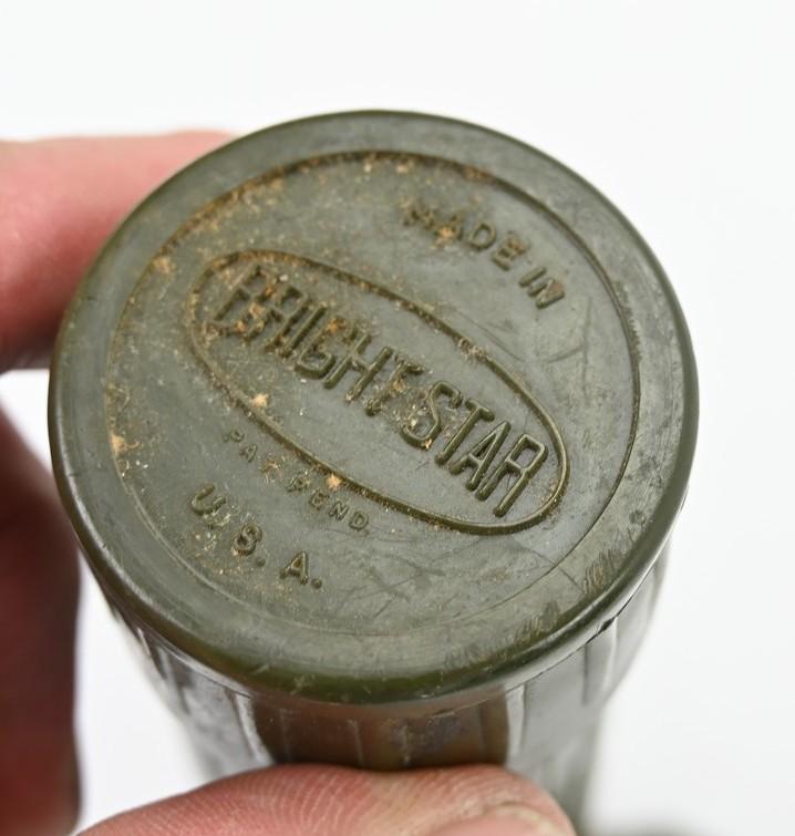In a very good condition a US WW2 TL-122B Flashlight. The flashlight is the second ww2 model and is nicely maker marked on the bottom by Bright Star. A very stunning flashlight in it's original colour.