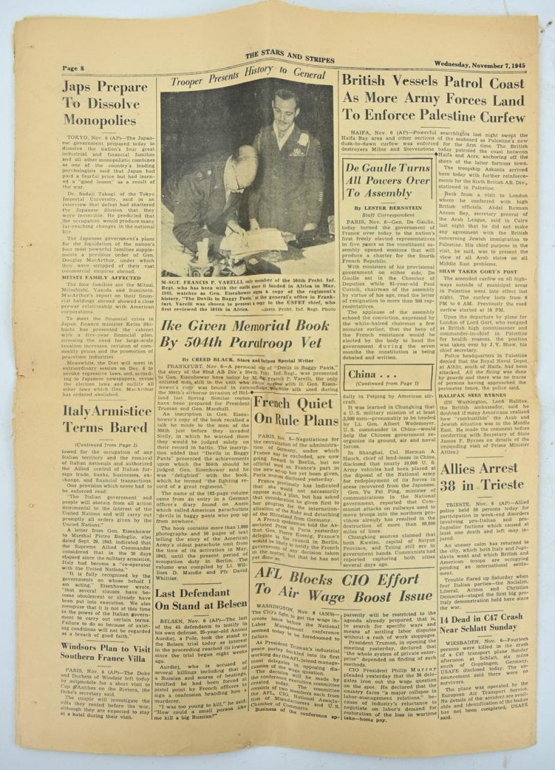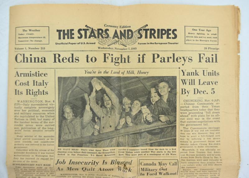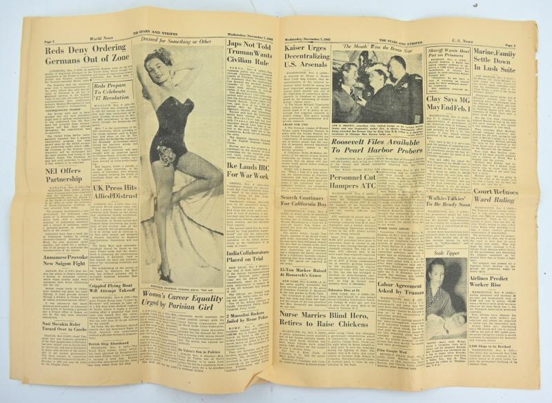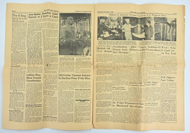 In a very nice condition a US WW2 'The Stars and Stripes' Newspaper. The newspaper is dated 7 November 1945 and is the German Edition.
