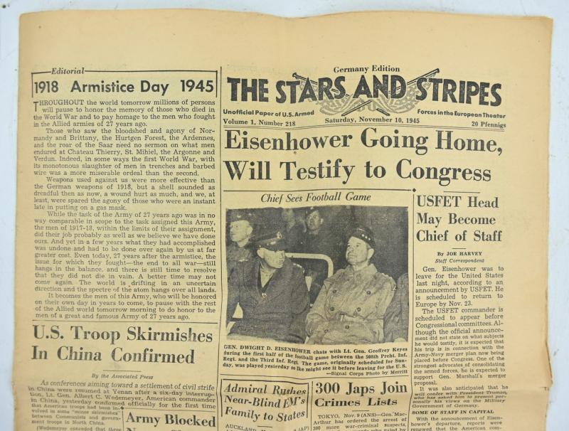 In a very nice condition a US WW2 'The Stars and Stripes' Newspaper. The newspaper is dated 10 November 1945 and is the German Edition.