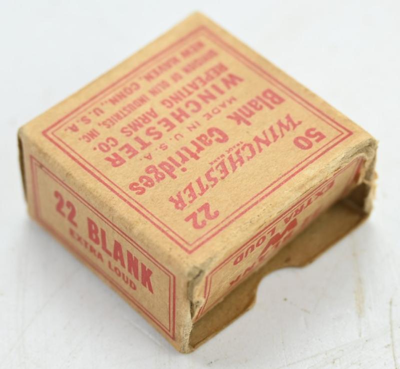 In a very nice condition a hard to find carton made ammunition box for the Winchester Blank Cartridges. The box comes without the original content. A very nice WW2 period box for display!