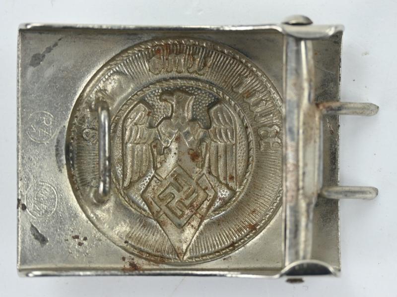 In a very good condition a German HJ Beltbuckle. The beltbuckle is made in nickle-silver and is marked with RZM M4/27 indicating production by RZM M4/27 Overhoff & Cie, Lüdenscheid.
