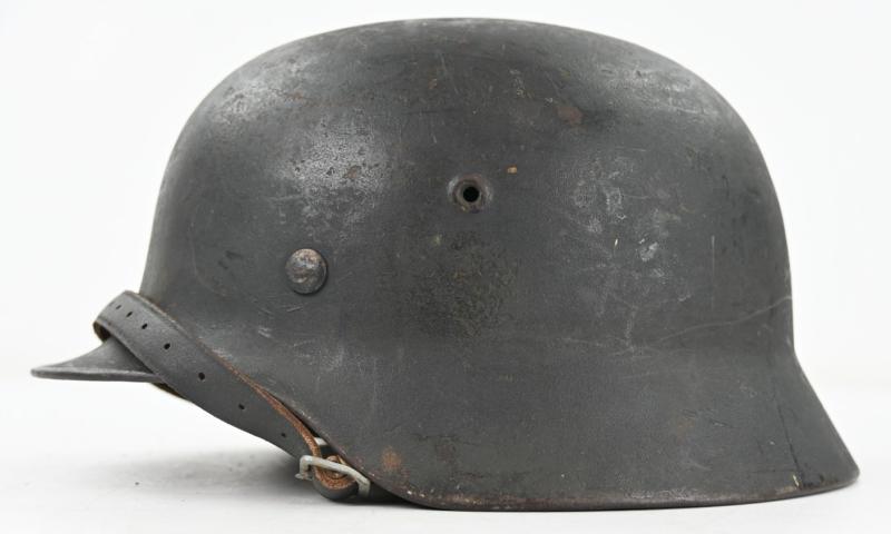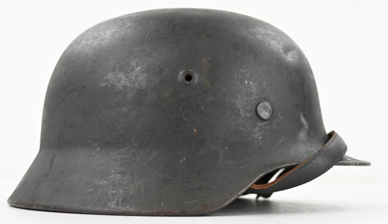It has on the outside of the helmet shell the original camo paint for 98% and is on the inside marked to 'Gefreiter Ebert'.