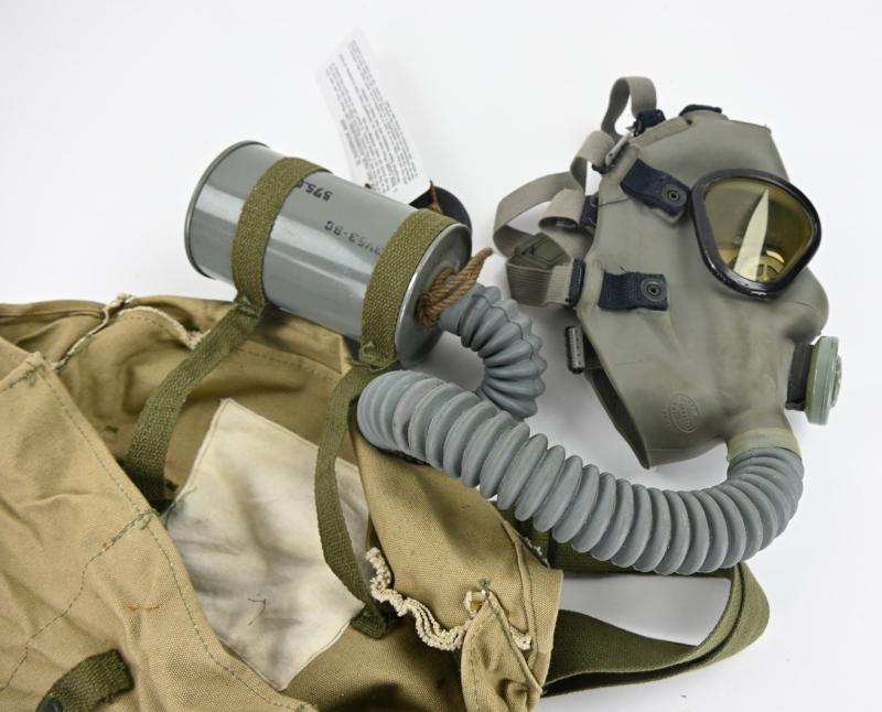 The khaki colour bag comes with all carryingstraps attached and has the complete gasmask, filter and parts inside the bag.