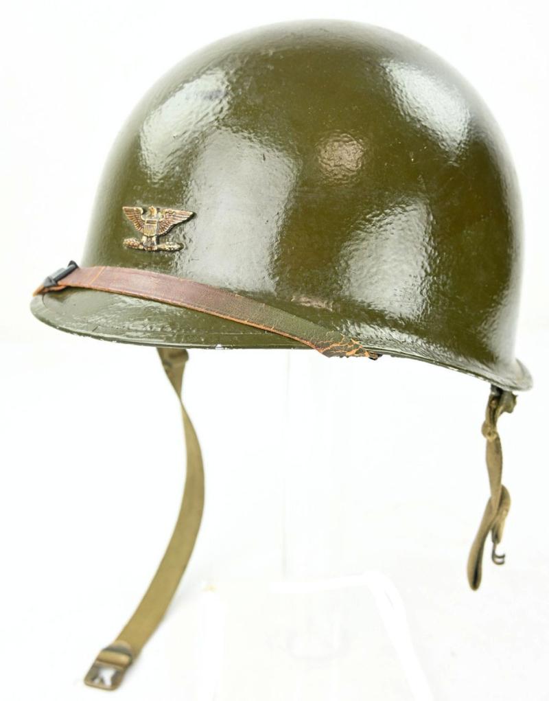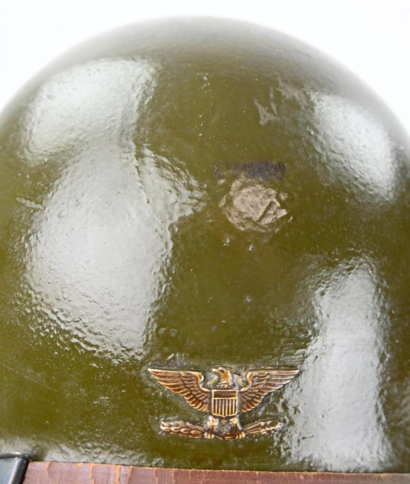 On the front of the helmet is a wartime applied Colonel rank insignia attached.
