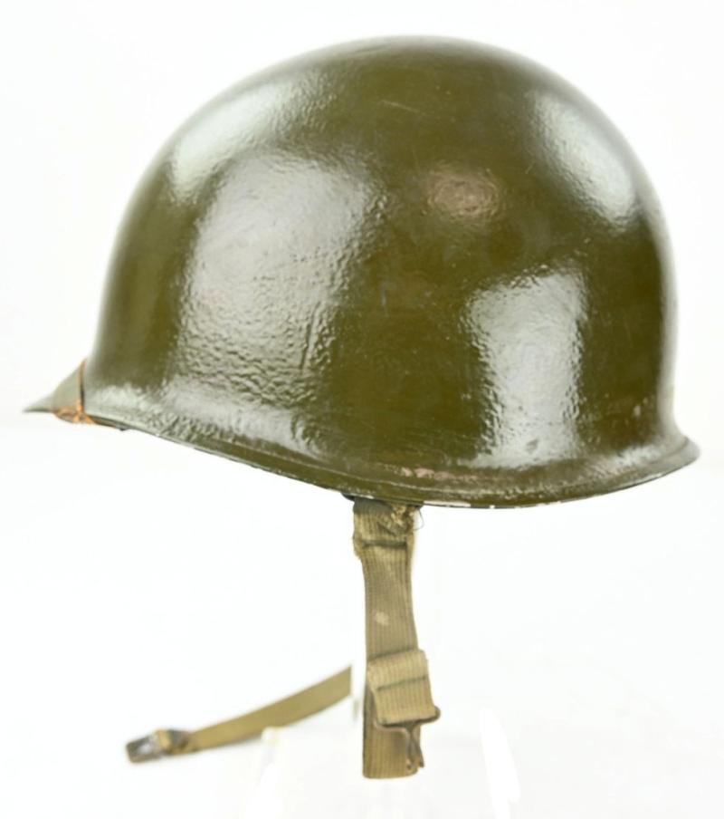 The helmet shell comes with the original chinstraps and has a stunning olive drap repaint.