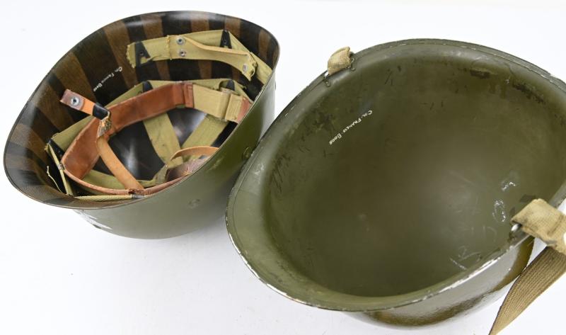 Also on the reverse side of the helmet is the wartime 'follow me' officer bar present underneath the paint.