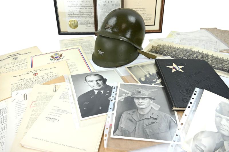 The grouping comes from the estate of Francis and contains next to family pictures, postwar army papers some stunning original wartime and postwar portrait pictures, the 2nd Infantry Division history book some certificates and his combat helmet.