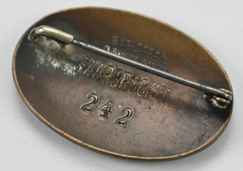 The rare early badge, maker marked on the reverse A.Stubbe. Berlin. With the protected by law Ges.gesch. and nurse numbered 242 and issued in the DRK region Saarbrucken.
