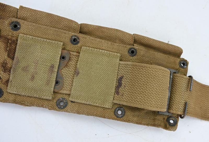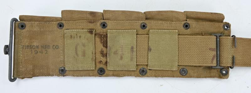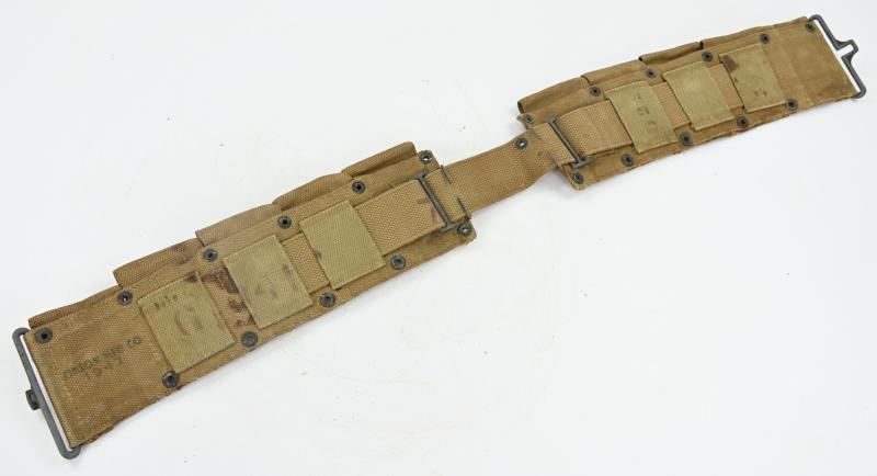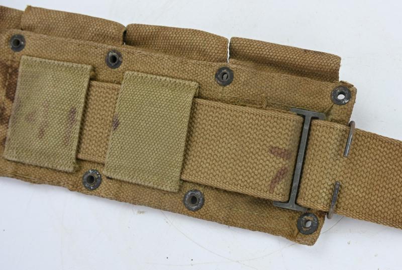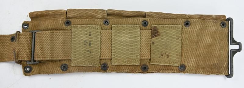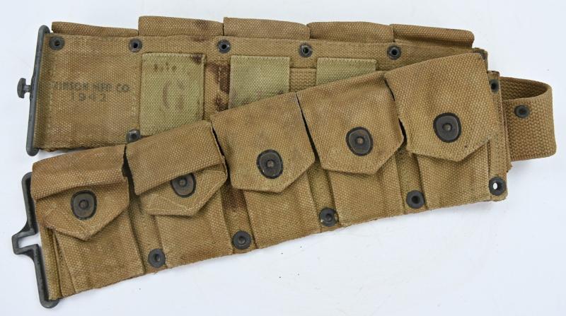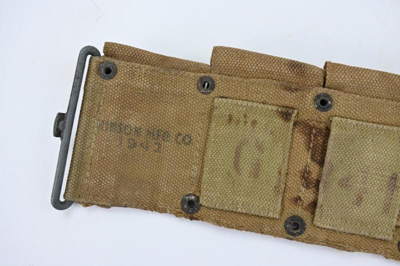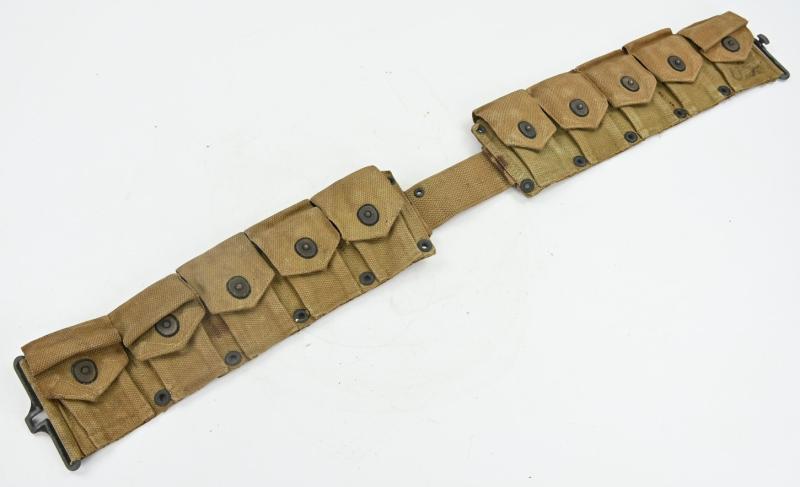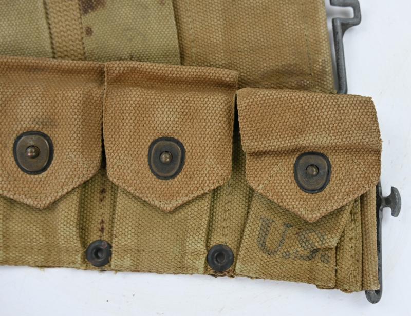 In a very nice used condition a US WW2 M1 Garand Rifle Ammunition Belt. The belt comes with maker marking and is dated 1942. Also the laundrynumber of the soldier is marked on the inside.
