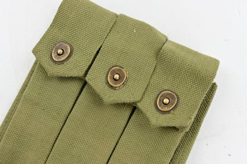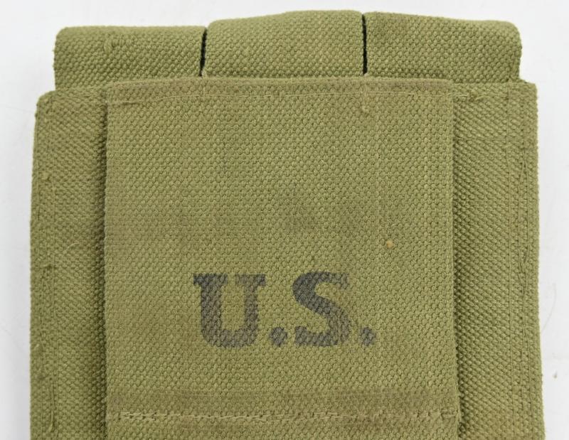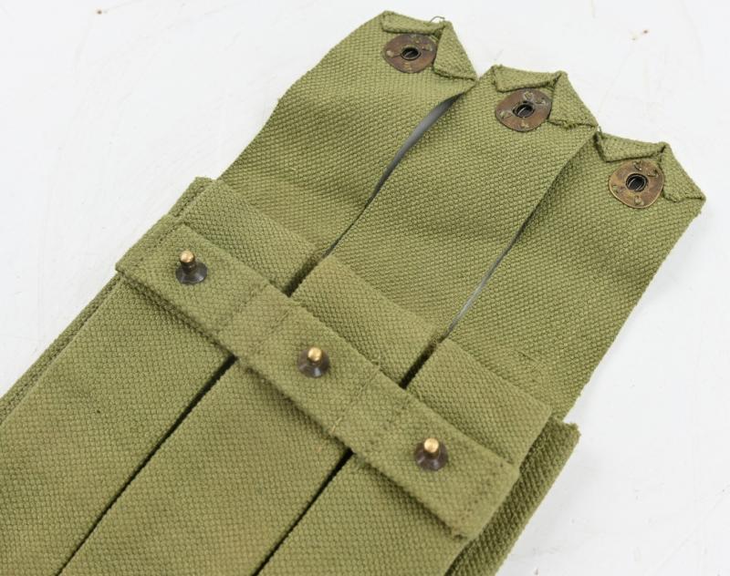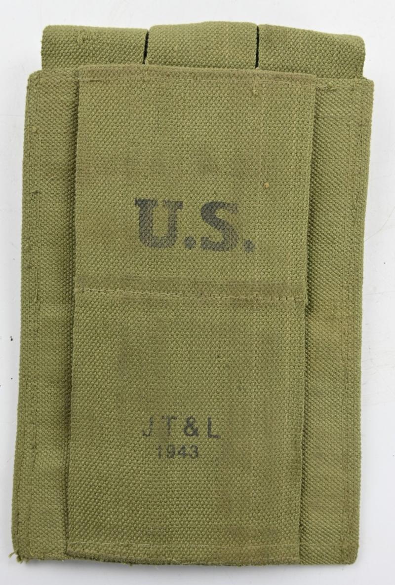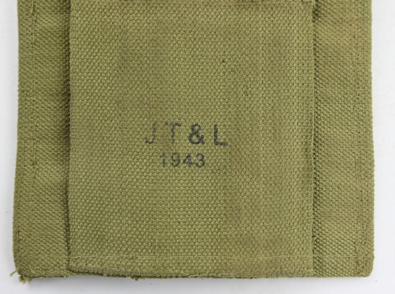 In a very good condition a US WW2 Thompson 3-Cell Magazine Pouch. JT& L and dated 1943. The pouch comes in the harder to find 30 round version. A very hard to find pouch!