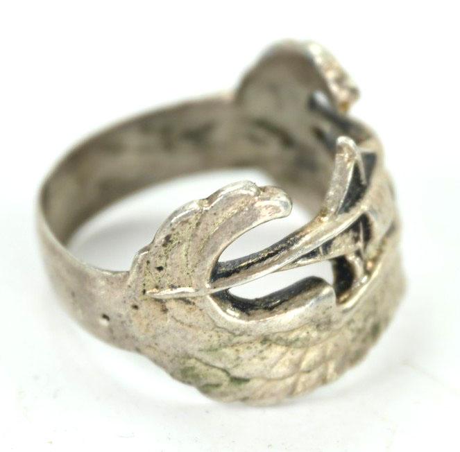 In a very good condition a US WW2 Sterling Silver made Glider Ring. The ring has the Glider wing changed to a ring version. Very nice display or mannequin use item!