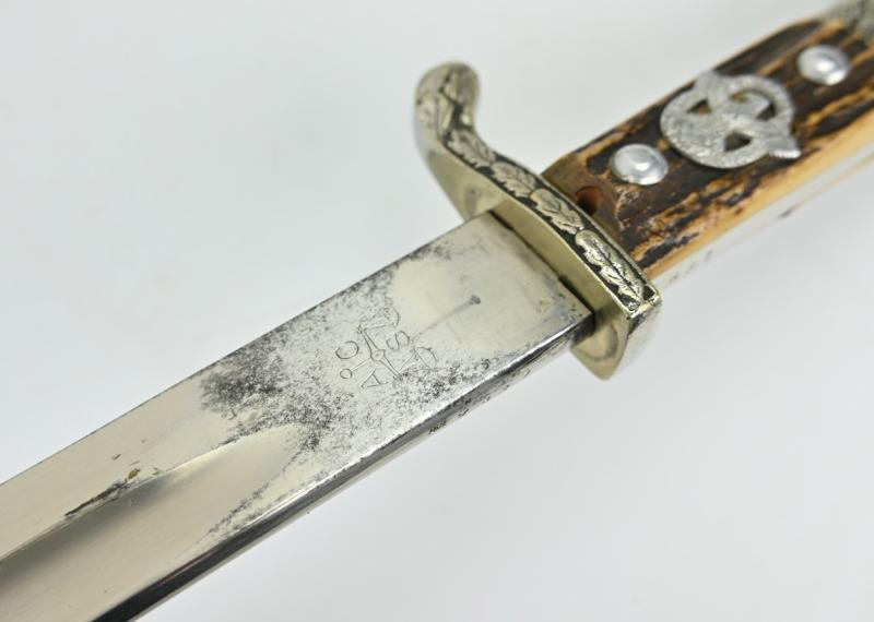 The bayonet comes with the unit maker marking on the crossguard and scabbard 'S.K. 1310' and is maker marked on the blade by Alexander Coppel (Alcoso) from Solingen.